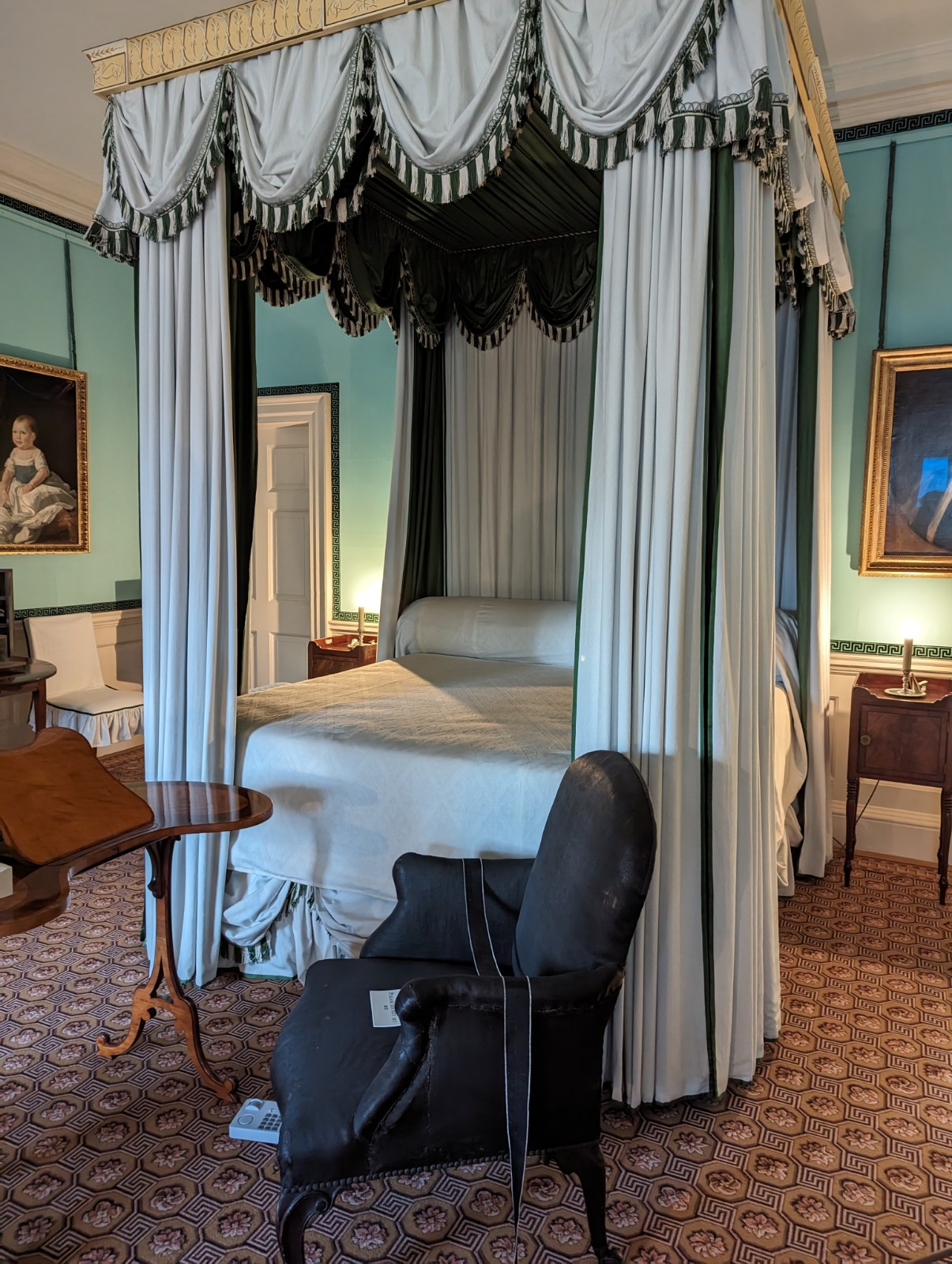 This portrait of Queen Charlotte hangs in the palace entrance. Here, she appears fair-skinned, although many historians say she had African heritage. (More on Bridgerton and Charlotte’s heritage here.) What struck me most forcefully in this portrait, though, is that the young Charlotte has a black slave. I found this a totally unexpected shock.